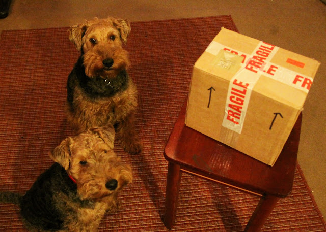 This was a package worth waiting for! We're so happy that it finally arrived! Such beautiful treats! We love your bling collar, Tess!